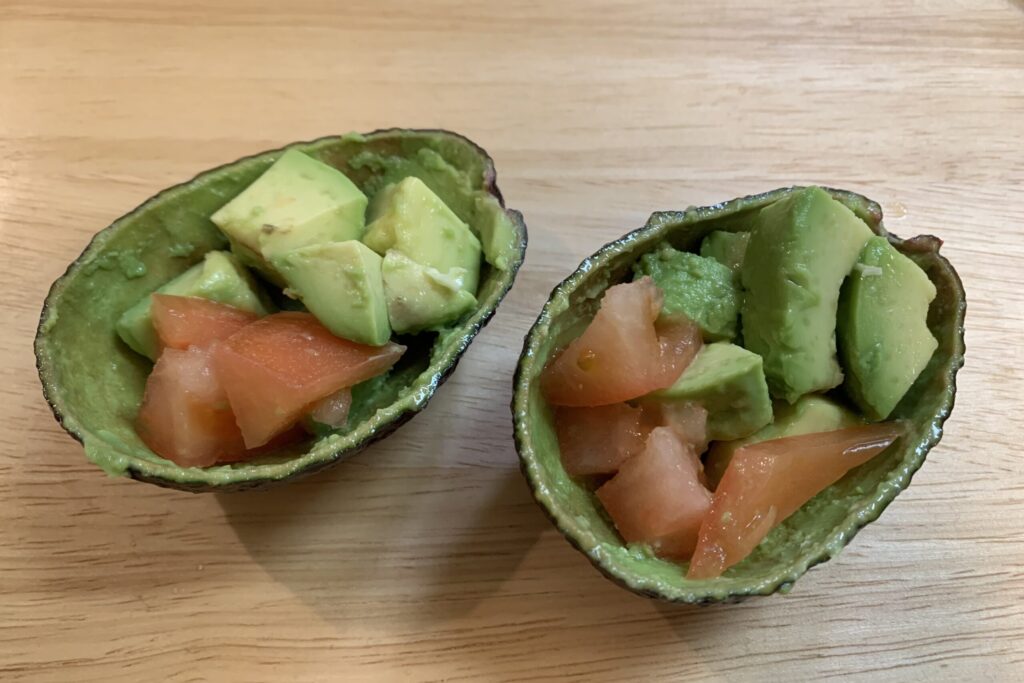 くり抜いた皮をお皿代わりとして使っても楽しい🥑