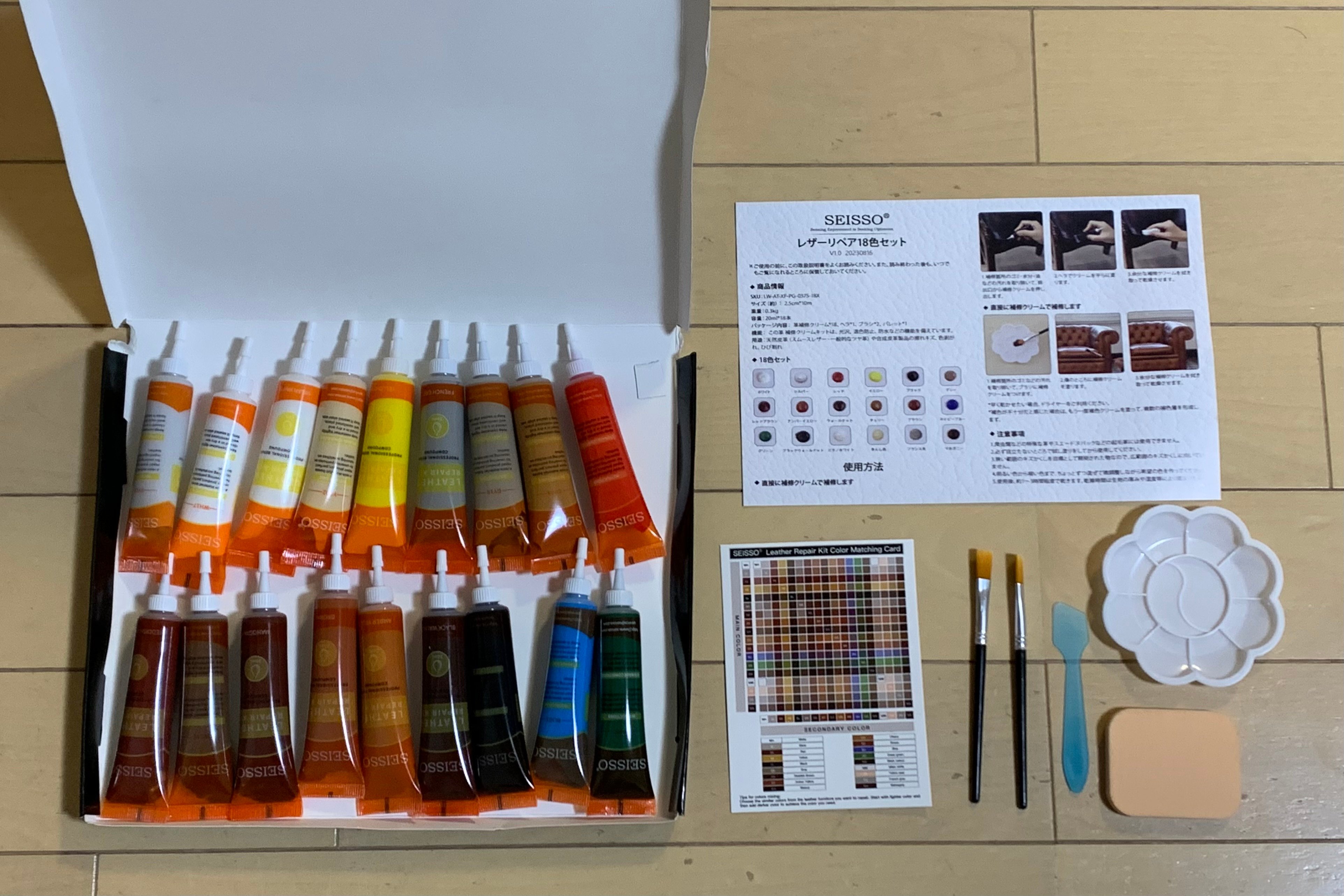 ▶︎ 革補修レザークリーム18色入り(SEISSO)(Amazon)