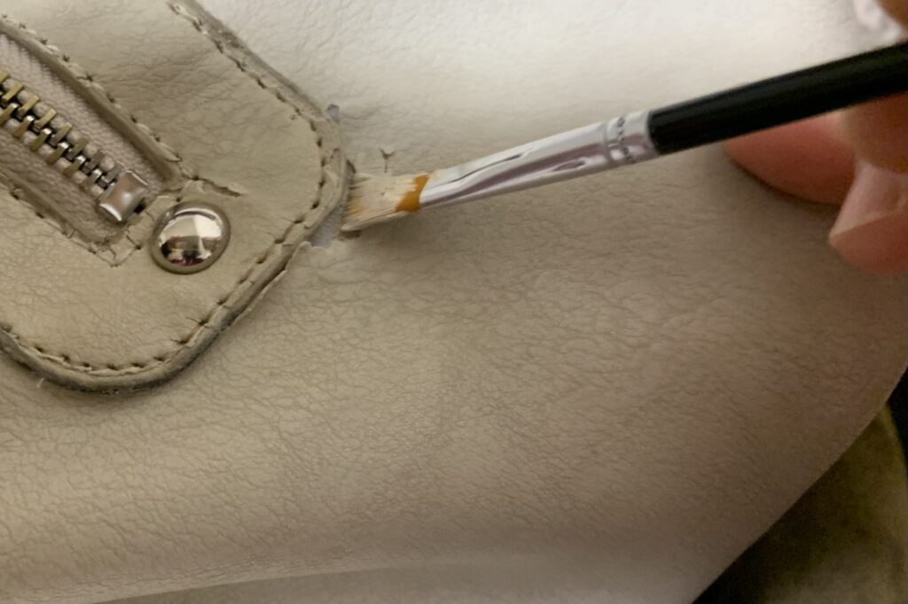 色の準備ができたら、剥げて白くなった部分にブラシでチョンチョンと補修クリームを付けていきます。