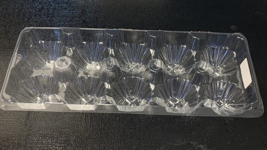 ⚫︎上からトレイの四隅をペキッ、ペキッと押しつぶす