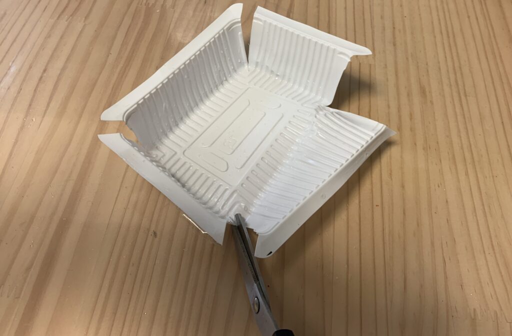 カサの出るトレイなど、切り込みを入れて平らにします。