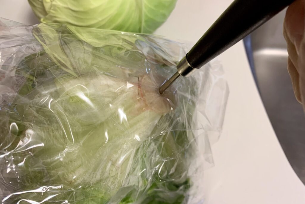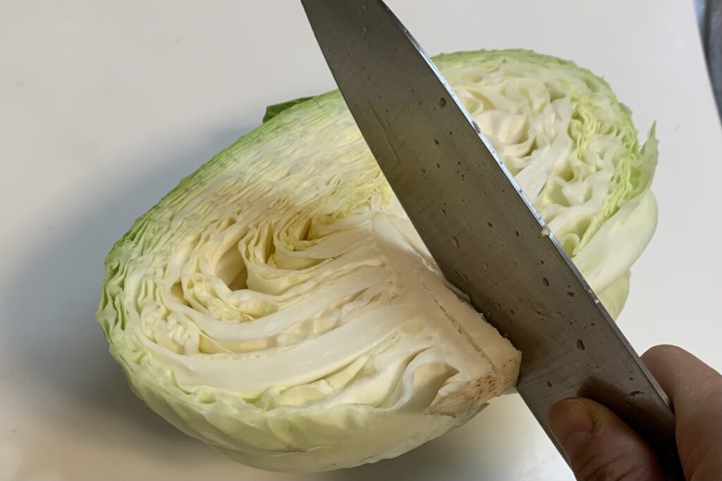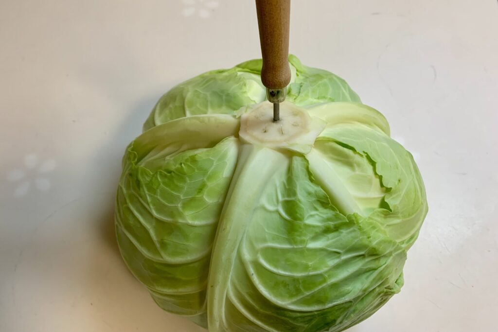 硬いキャベツの芯は、穴を広げるように少しずつ回ながら刺すと抜けやすいです。