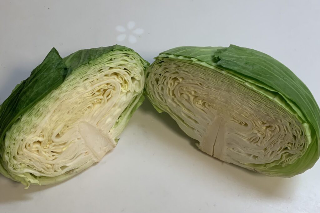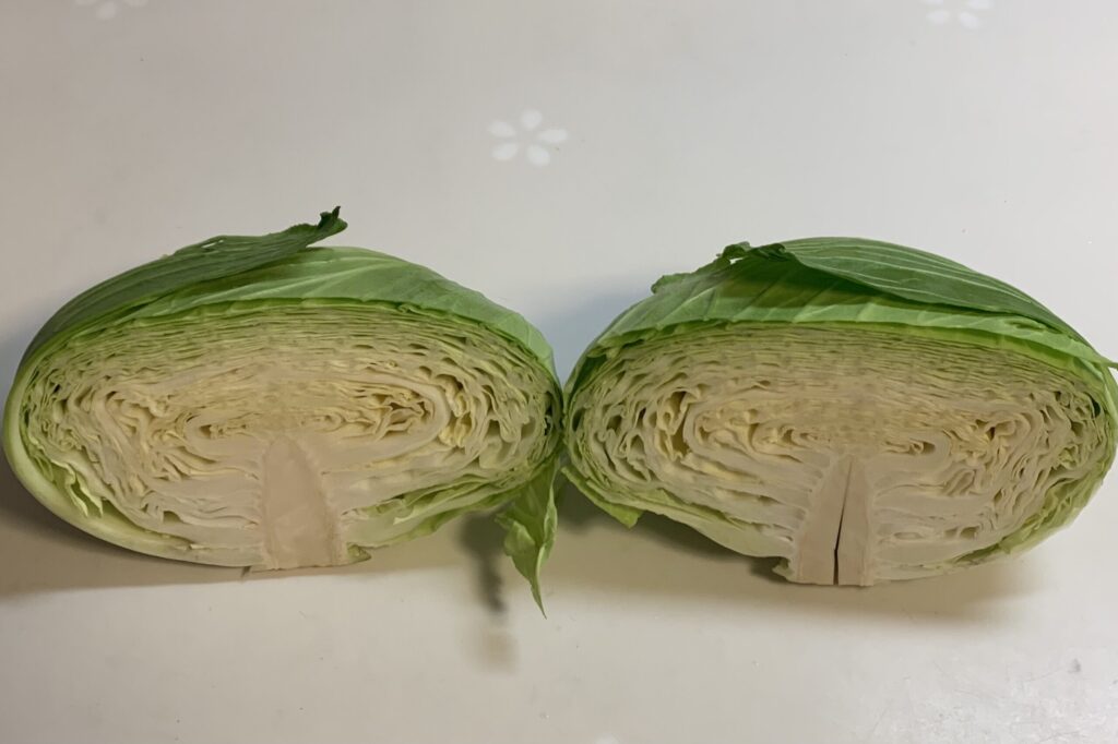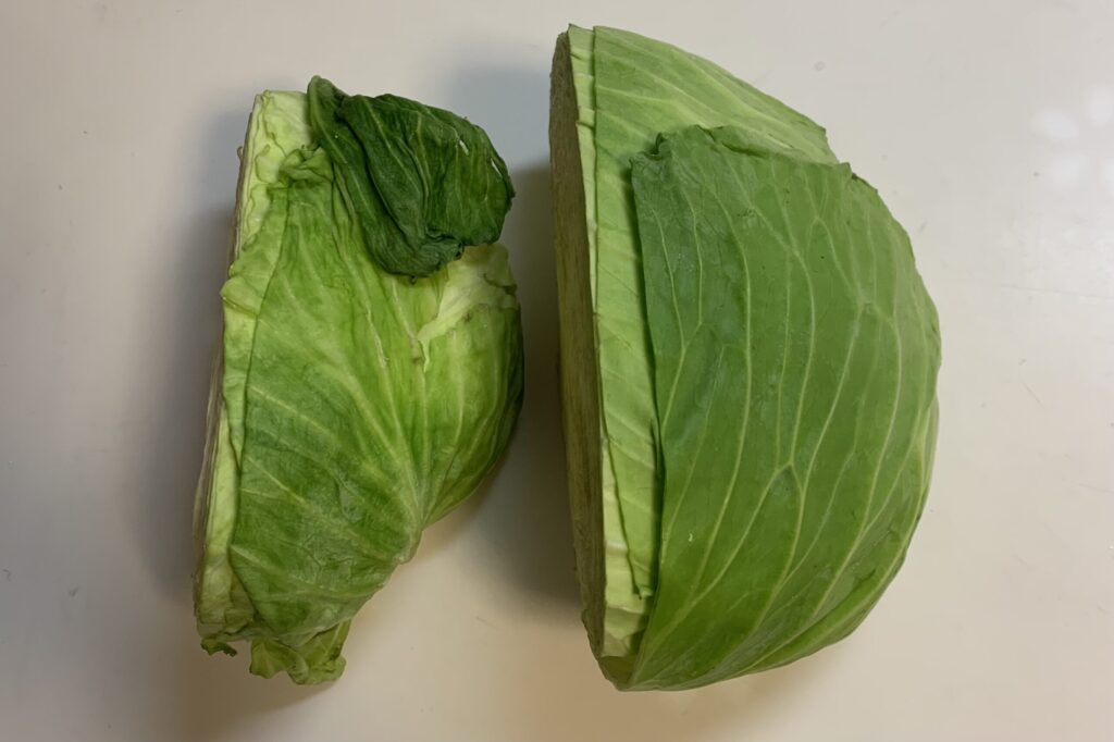 よく見ると左側のキャベツは少し芯の部分が凹み、葉っぱも萎れています。