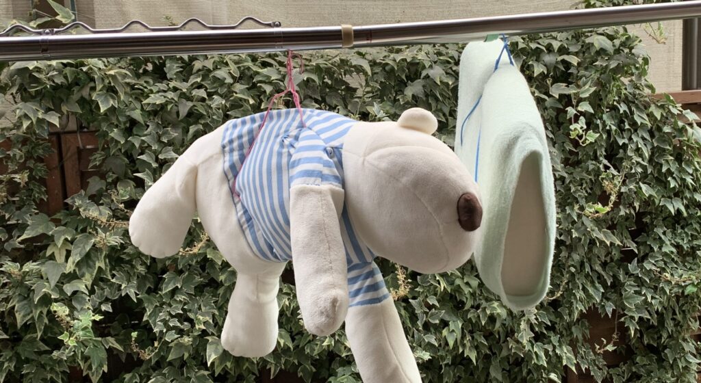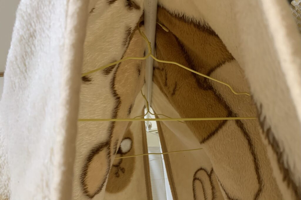 ④ 枕やぬいぐるみを真ん中に置いて、挟んで干す。